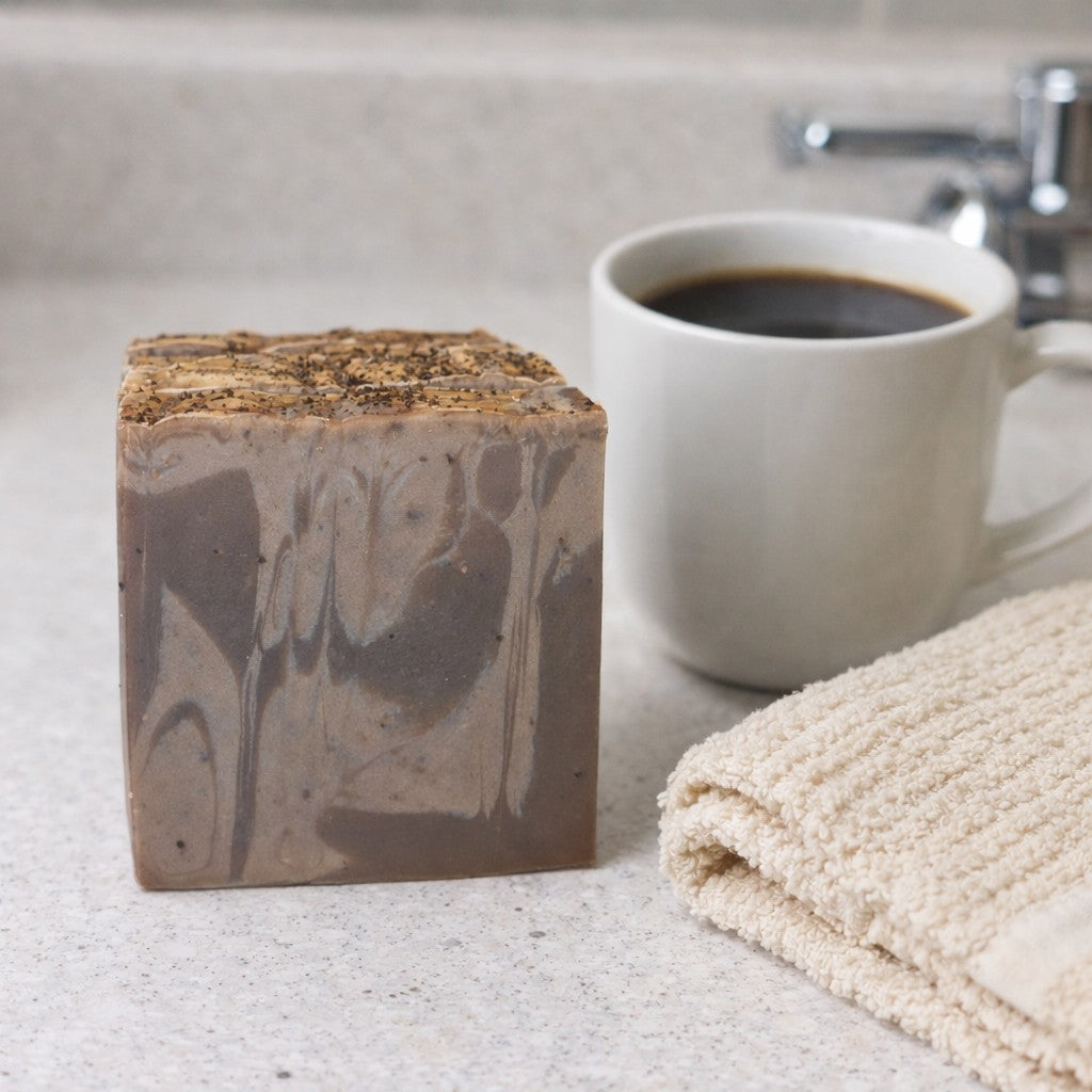 Hazelnut Cappuccino Coffee Soap is handcrafted with real coffee grounds for gentle exfoliation and a creamy, café-inspired scent that lingers beautifully on the skin.